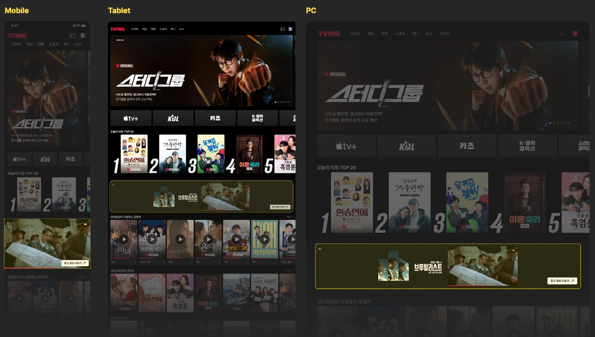 노출 예시 (PC/MO&Tablet/CTV)