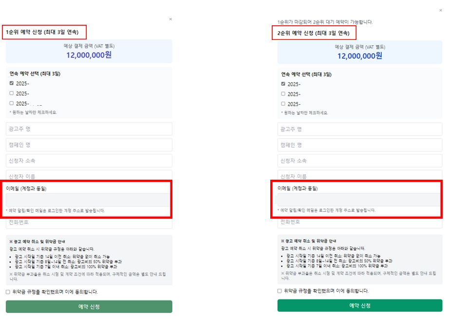 위약금 부과 시작일자 이후 대기 예약을 통해 청약 1순위로 확정되는 경우, 확정 당일 안내 메일이 발송됩니다.